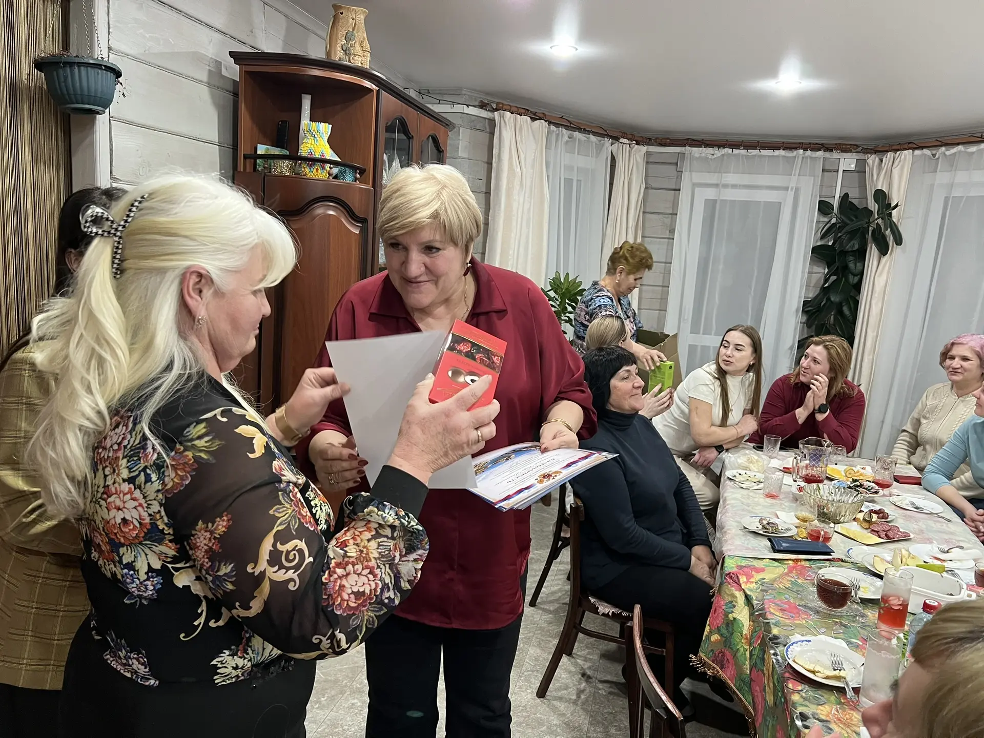 "Я искренне ценю тех, с кем мы бок о бок работаем уже не первый год. Наши благодарности и сладкие подарки – это лишь небольшой знак признательности за их труд и поддержку. Спасибо вам за вашу мудрость, красоту и заботу", – обратилась к собравшимся Лариса Егорова.